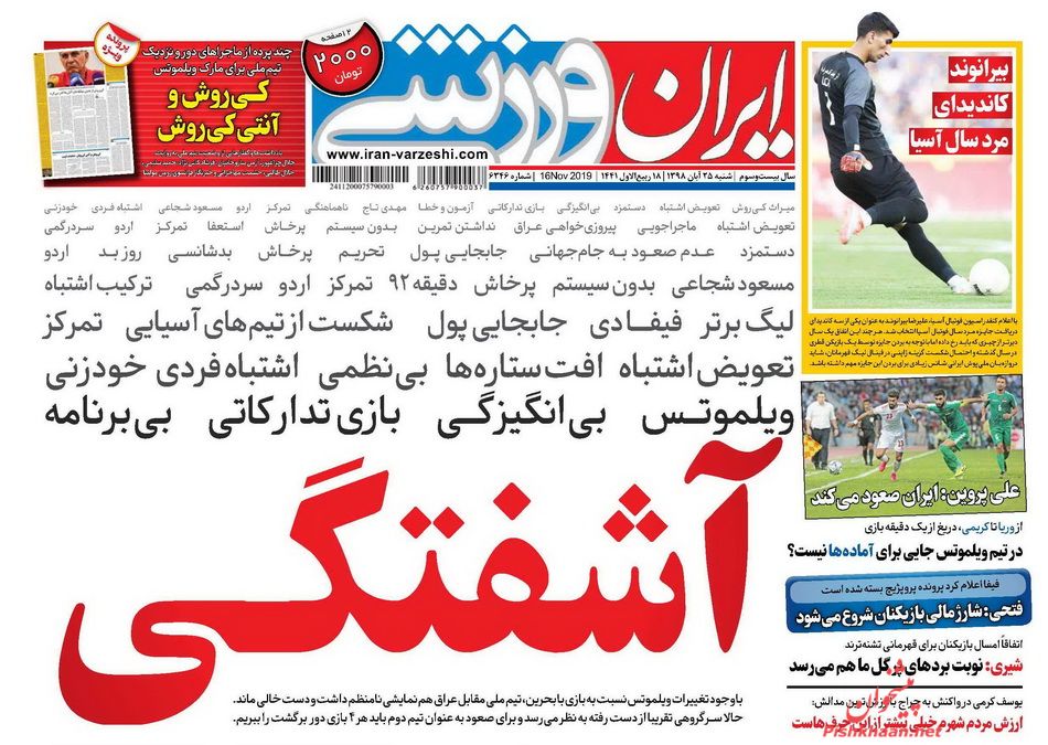 ایران ورزشی ، شنبه ۲۵ آبان