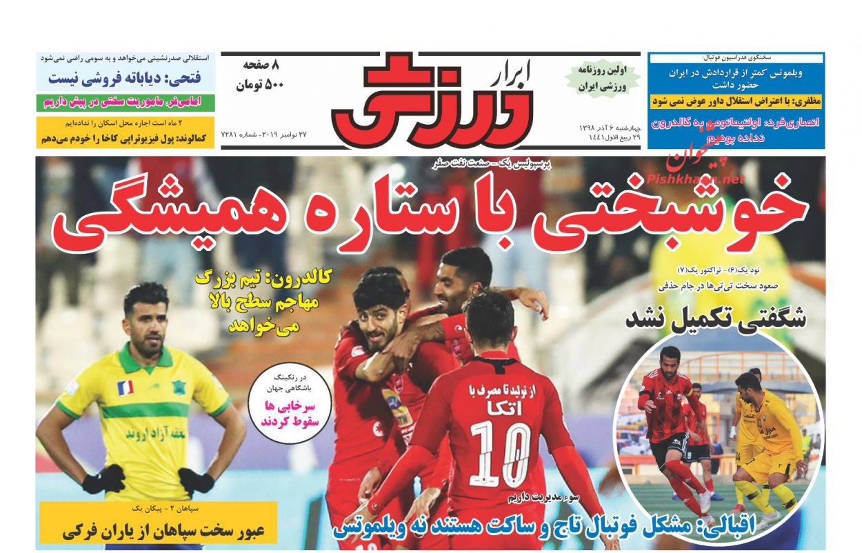 استقلال جوان ، چهارشنبه ۶ آذر