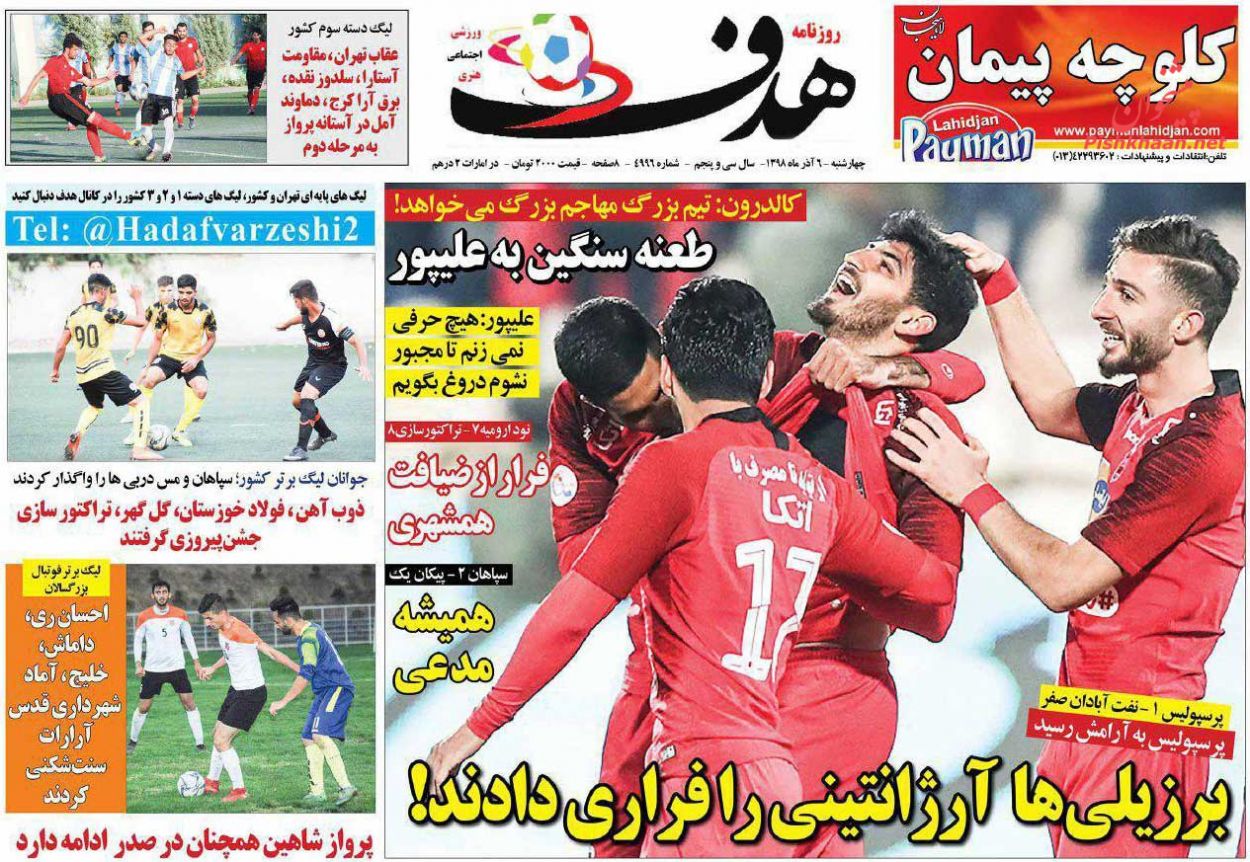 هدف ، چهارشنبه ۶ آذر