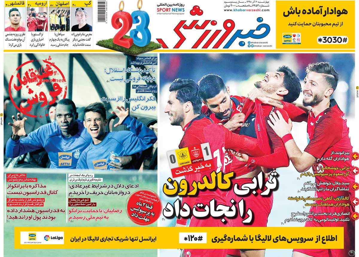 خبر ورزشی ، چهارشنبه ۶ آذر
