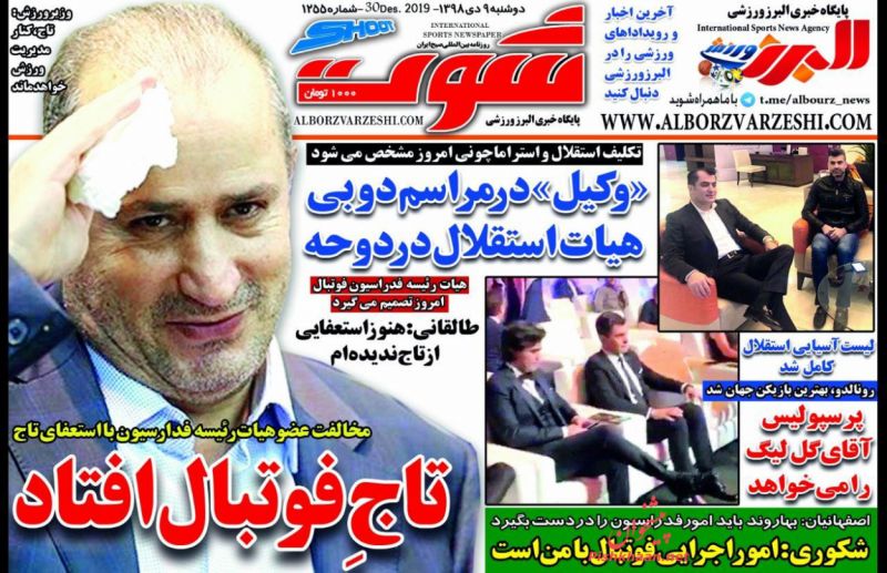 ایران ورزشی ، دوشنبه ۹ دی