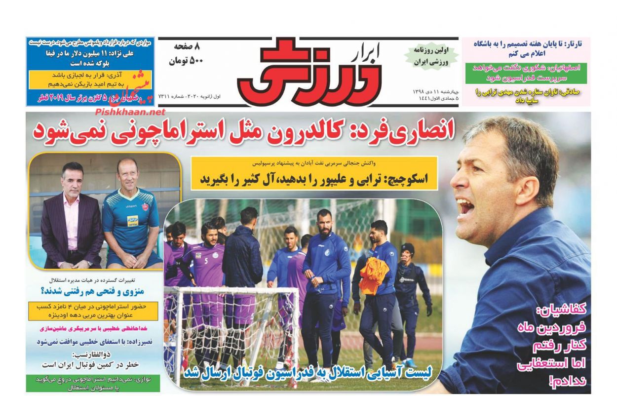 ابرار ورزشى ، چهارشنبه ۱۱ دی