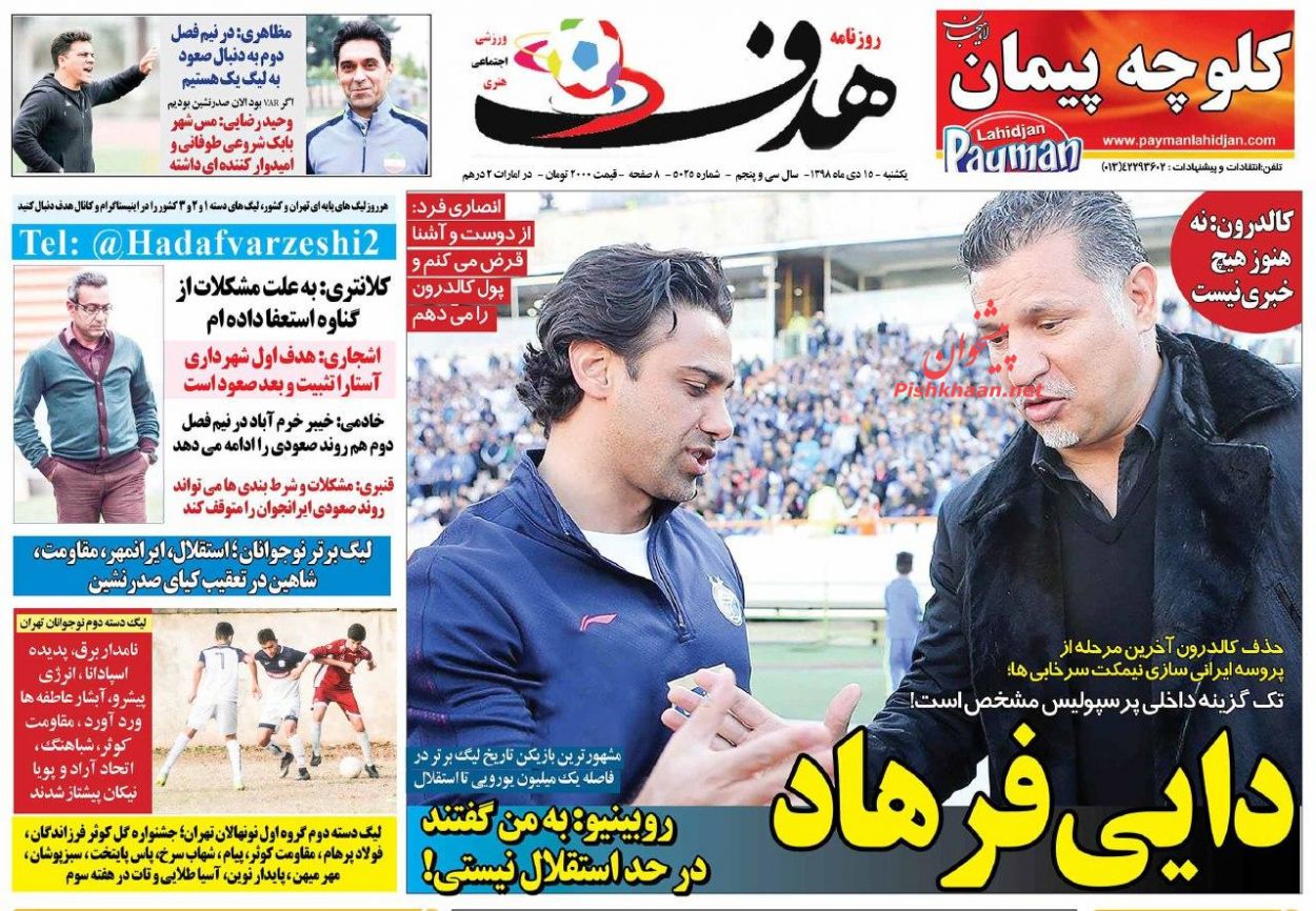 استقلال جوان ، یکشنبه ۱۵ دی
