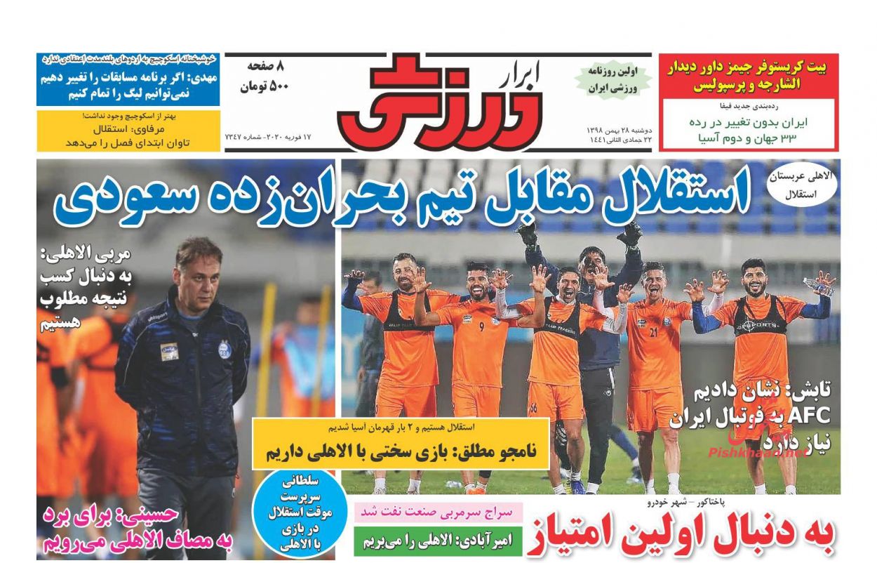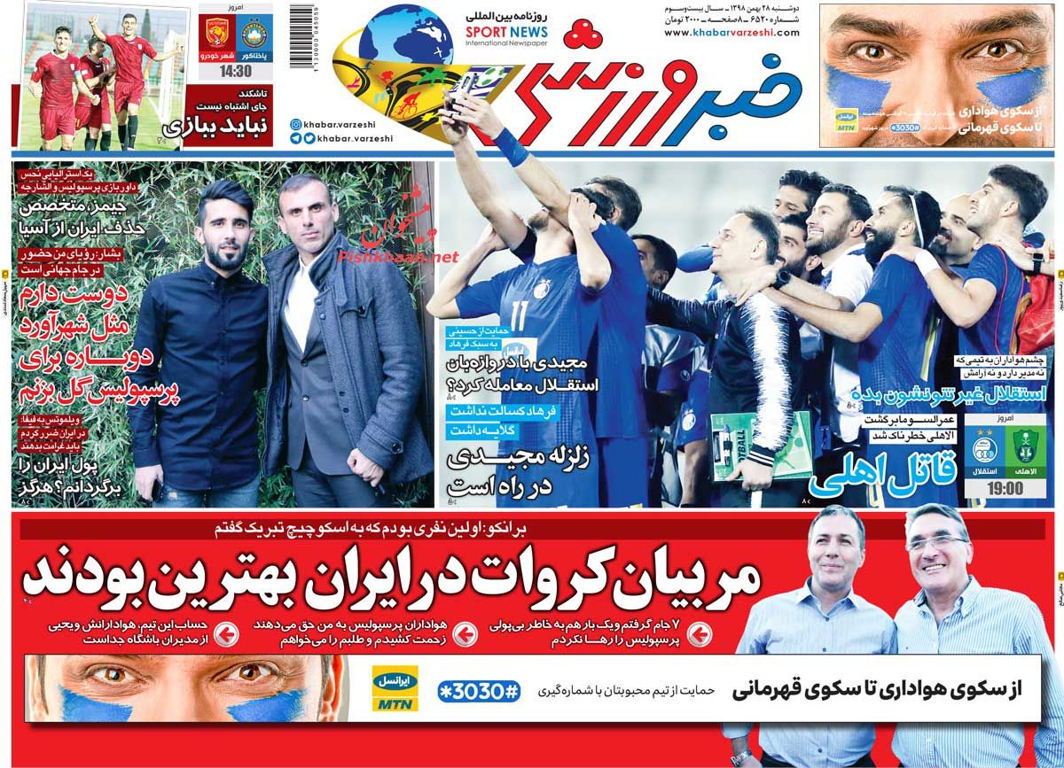 ایران ورزشی ، دوشنبه ۲۸ بهمن