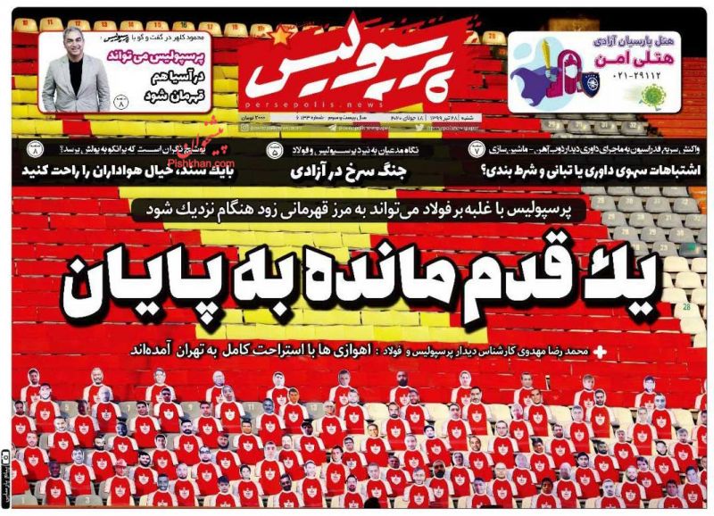 پرسپولیس ، شنبه ۲۸ تیر