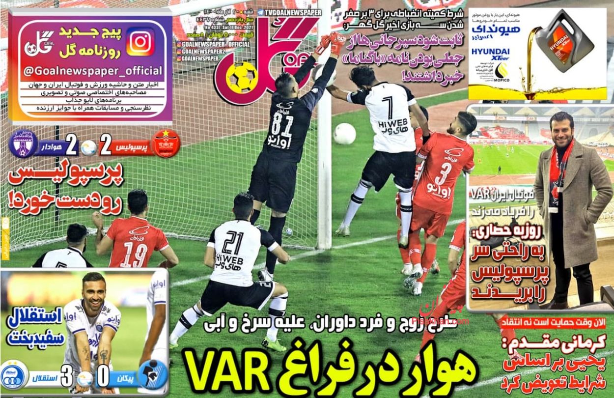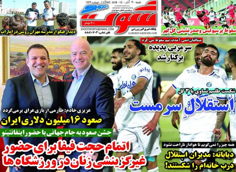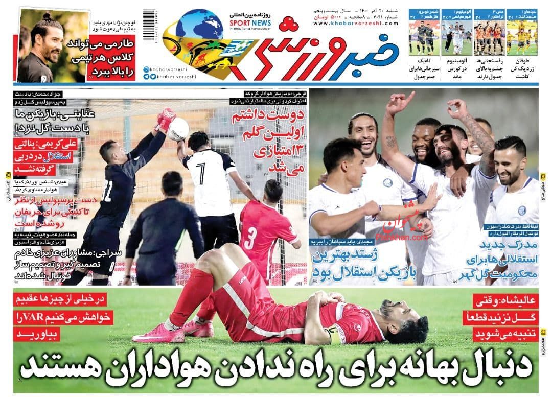 ابرار ورزشى ، شنبه ۲۰ آذر