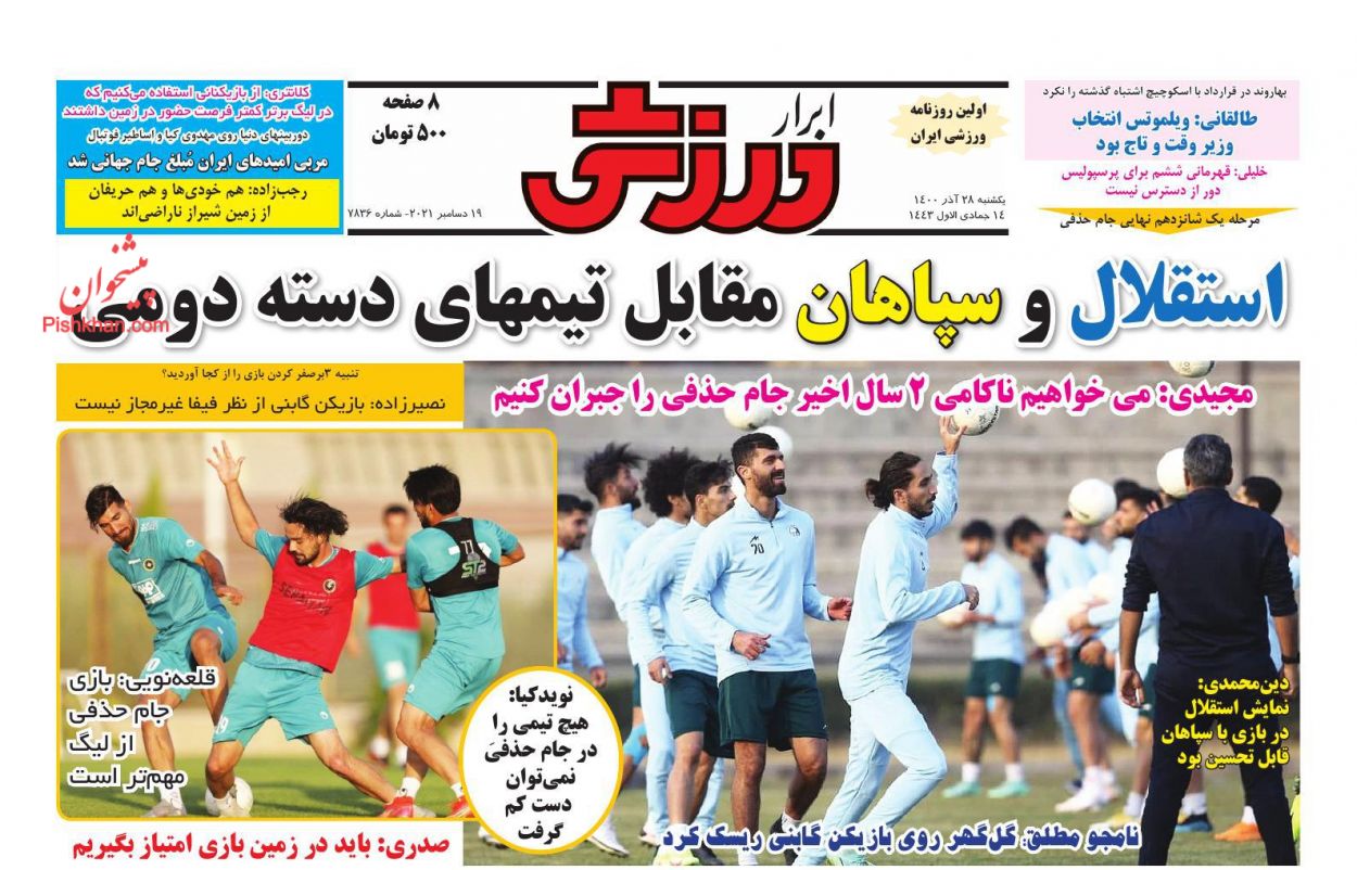 ابرار ورزشى ، یکشنبه ۲۸ آذر