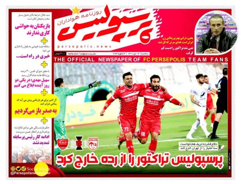 پرسپولیس ، سهشنبه ۱۴ دی