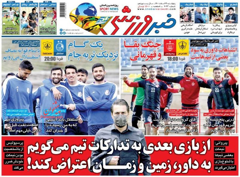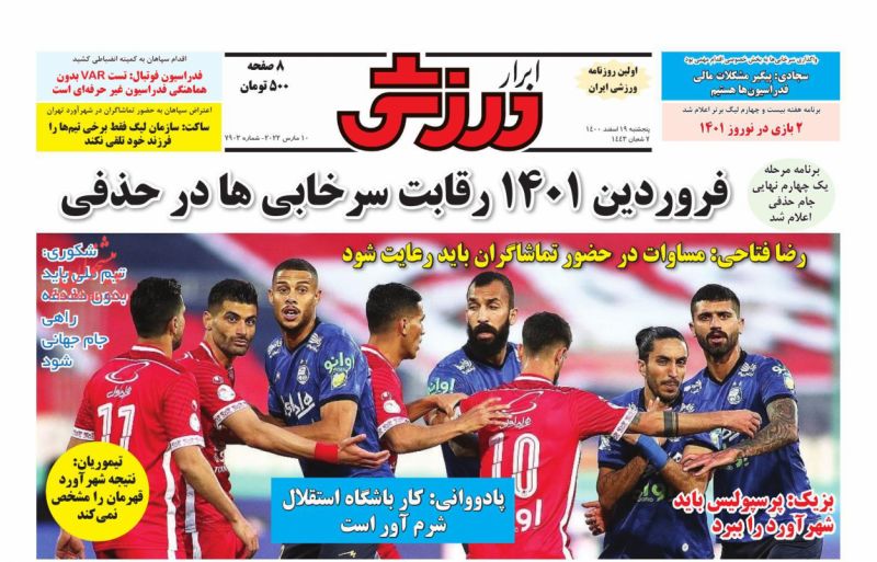 ایران ورزشی ، پنجشنبه ۱۹ اسفند