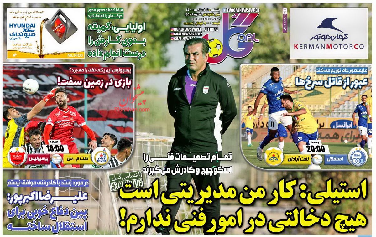 پرسپولیس ، پنجشنبه ۱۹ اسفند