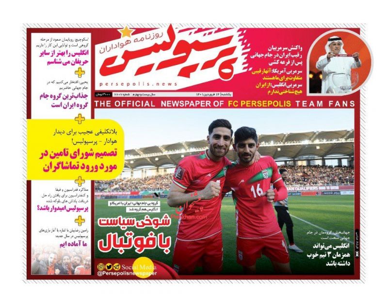 پرسپولیس ، یکشنبه ۱۴ فروردين