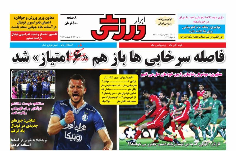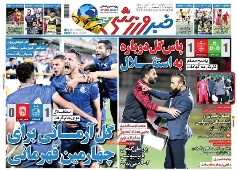 ایران ورزشی ، سهشنبه ۲۰ ارديبهشت