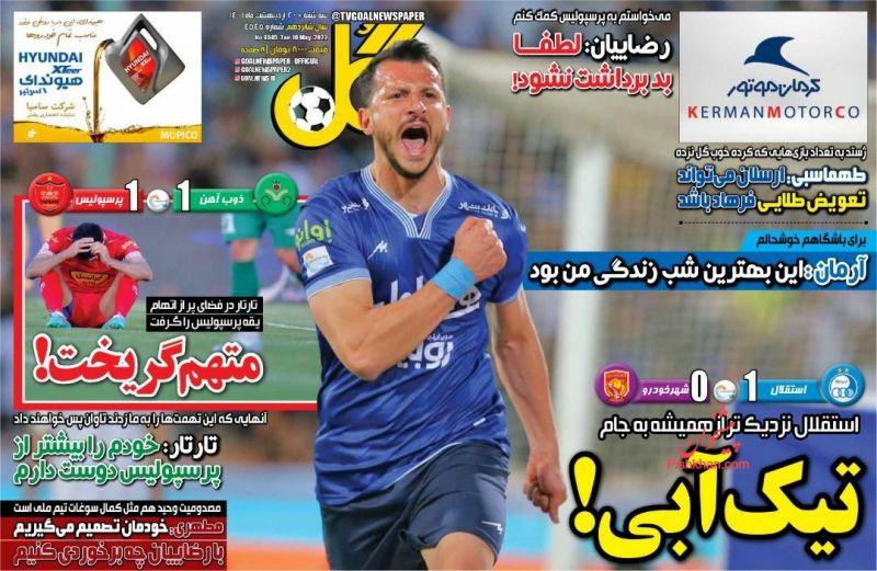 پرسپولیس ، سهشنبه ۲۰ ارديبهشت
