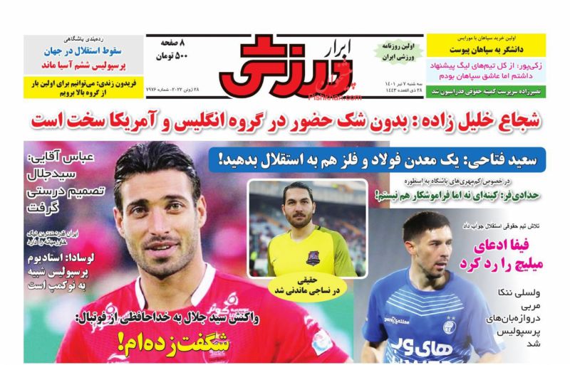 ابرار ورزشى ، سهشنبه ۷ تیر