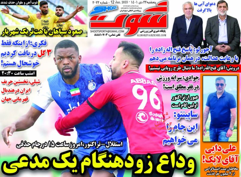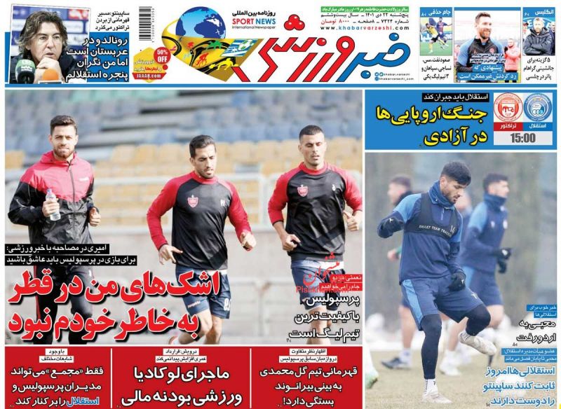 ایران ورزشی ، پنجشنبه ۲۲ دی