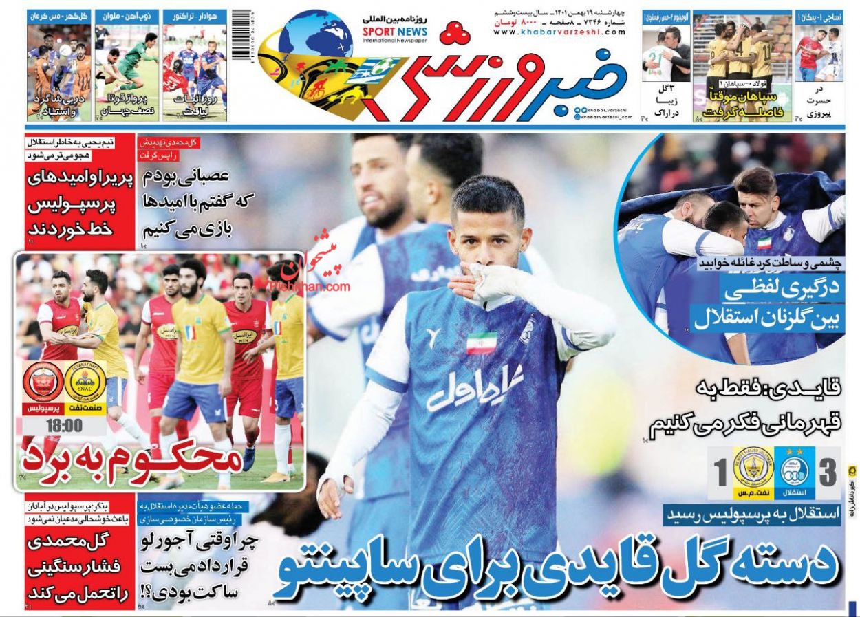 ایران ورزشی ، چهارشنبه ۱۹ بهمن