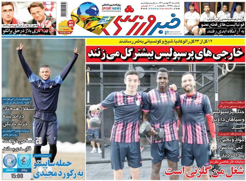 ایران ورزشی ، یکشنبه ۲۳ بهمن
