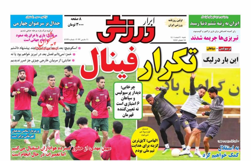 ایران ورزشی ، یکشنبه ۳۰ بهمن