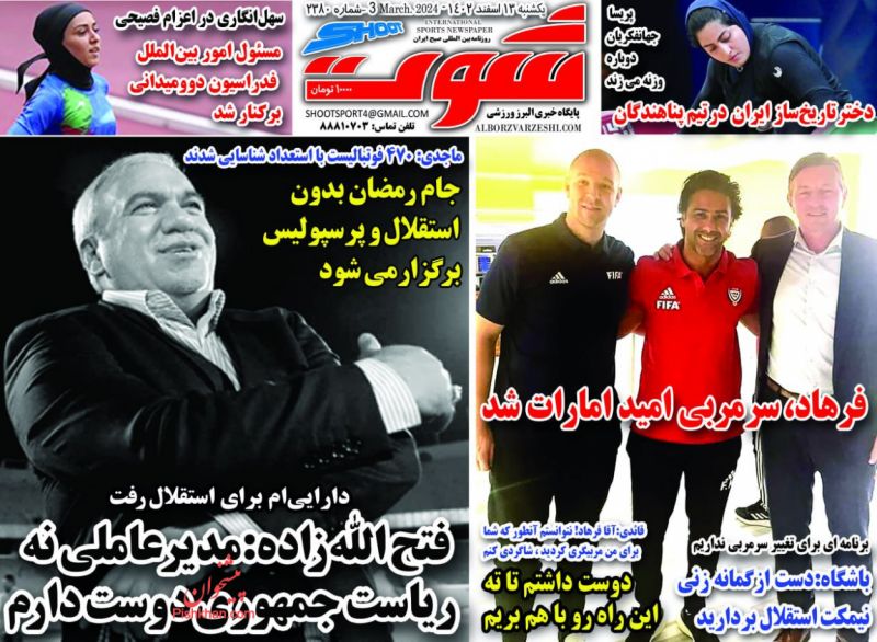 شوت ، یکشنبه‌ ۱۳ اسفند